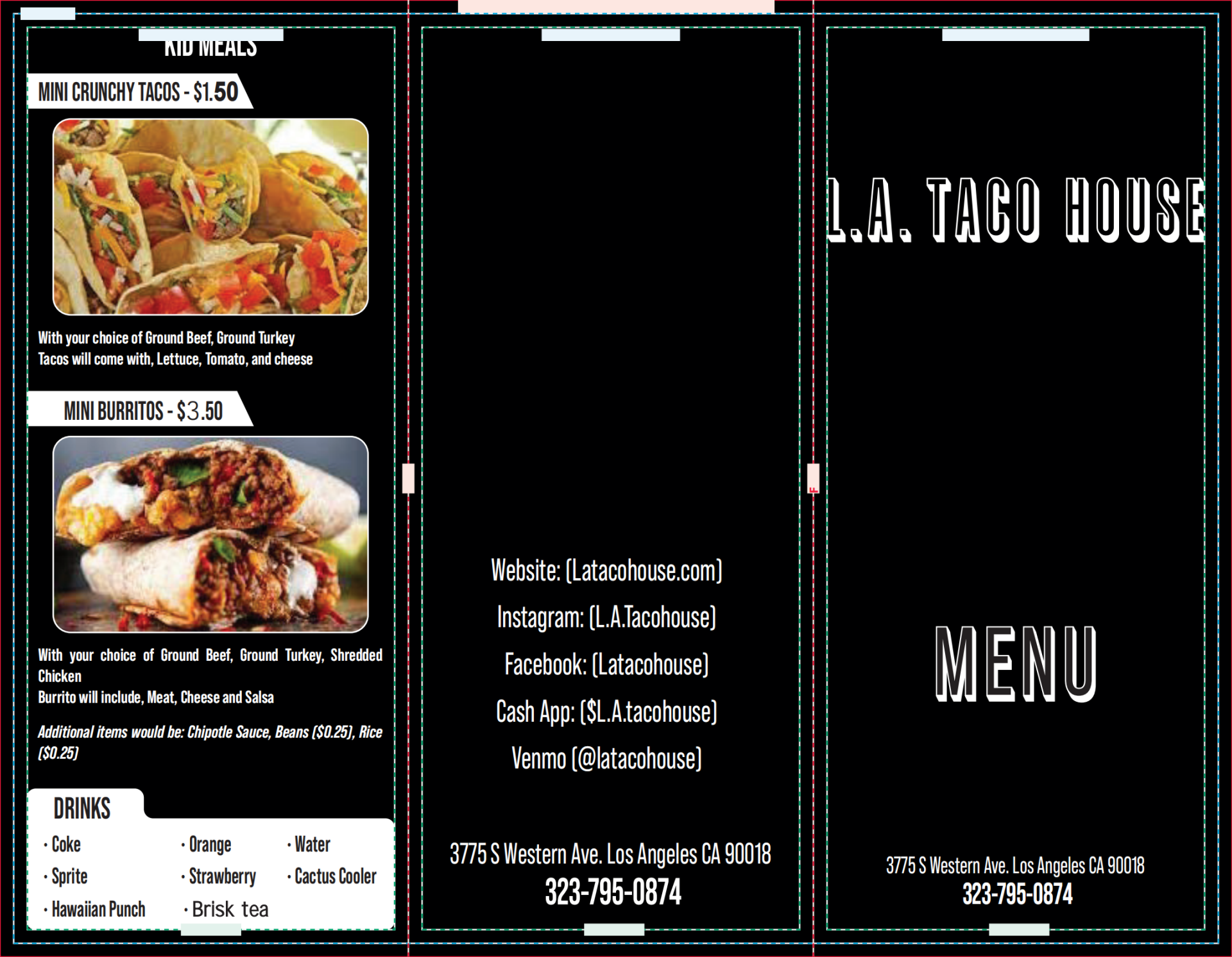 L.A. Taco House is the " Home of the Homemade Taco' Los Angeles is known for its famous Taco Tuesday's. As a child growing up we always looked forward to homemade Ground Beef Taco's inside that freshly fried Tortilla shell. Nothing has Changed Today , We still love those freshly fried shells and they go great with any our well seasoned Ground Beef , Ground Turkey , Shredded Chicken , or our Famous Brisket.